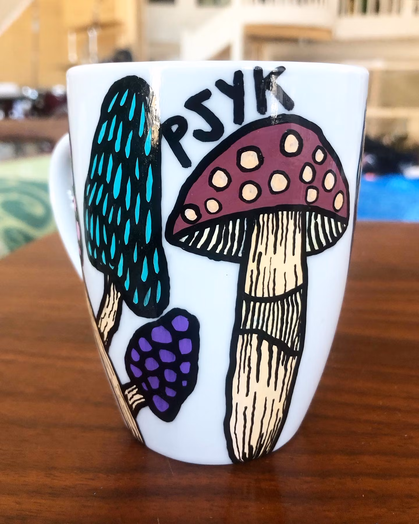PSYKBRYT SVAMPAR 350 kr 280 kr Produkten är tyvärr slut i lager. :( Handmålad mugg med texten PSYKBRYT BABY. Bör handdiskas.