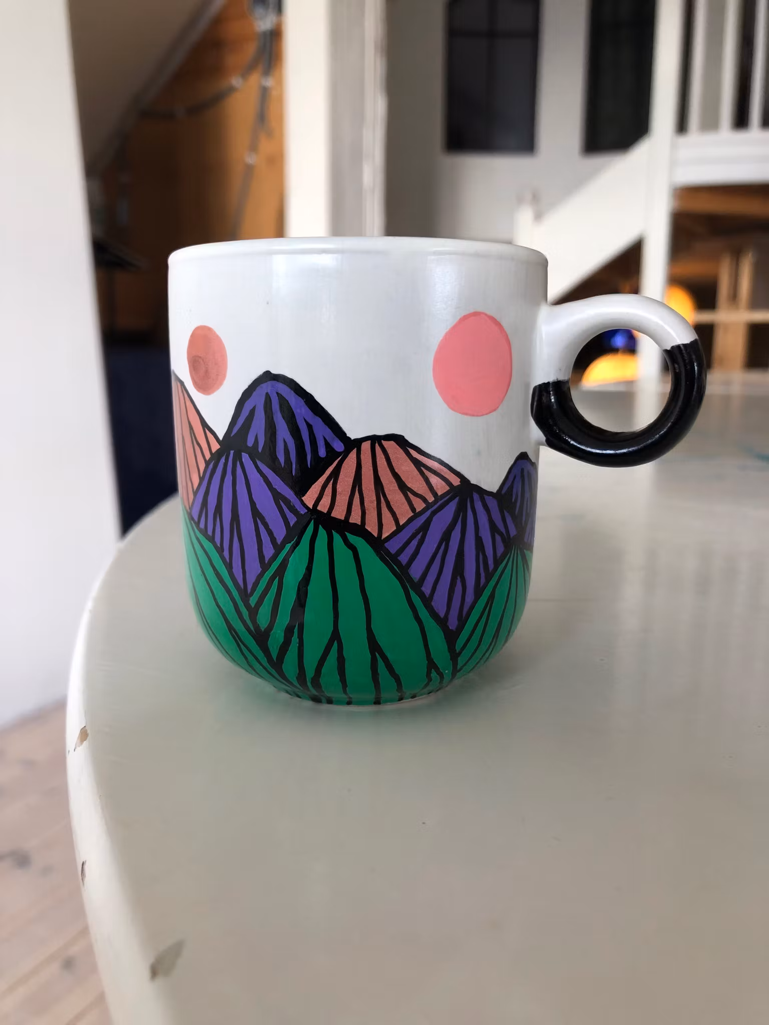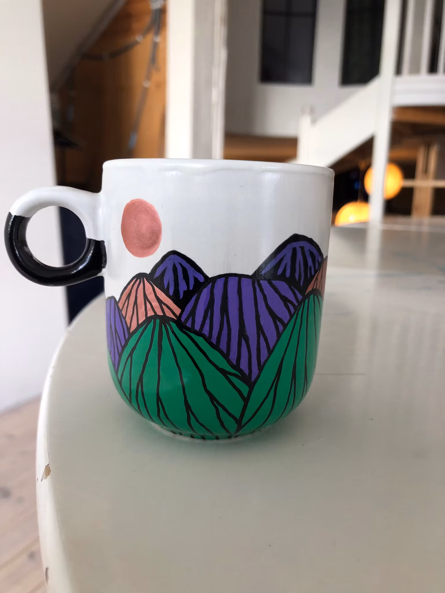 Kaffemugg - Bergskap grönlila I lager. Antal: 1 350 kr LÄGG I KORGEN Bör diskas för hand eftersom den är handmålad.