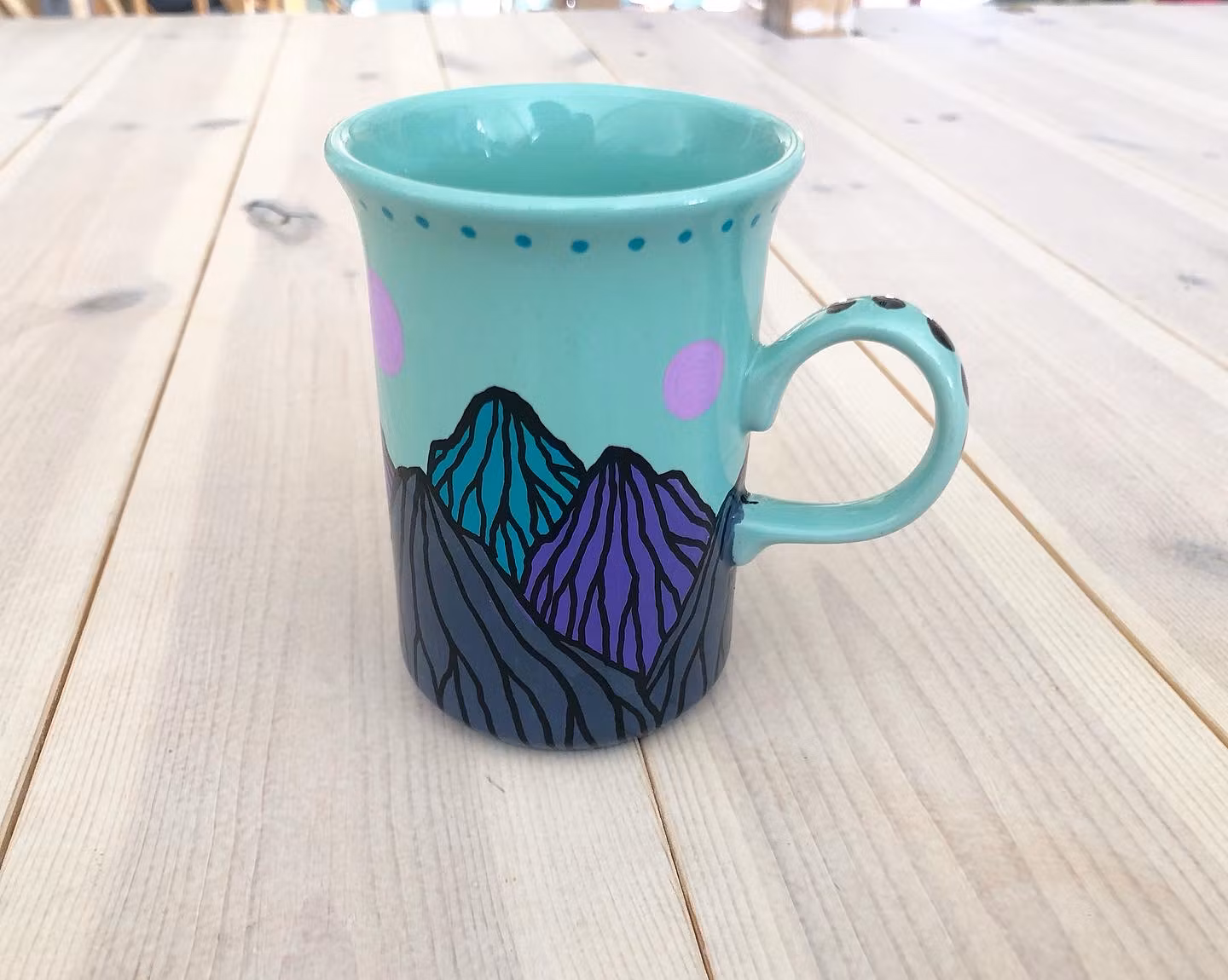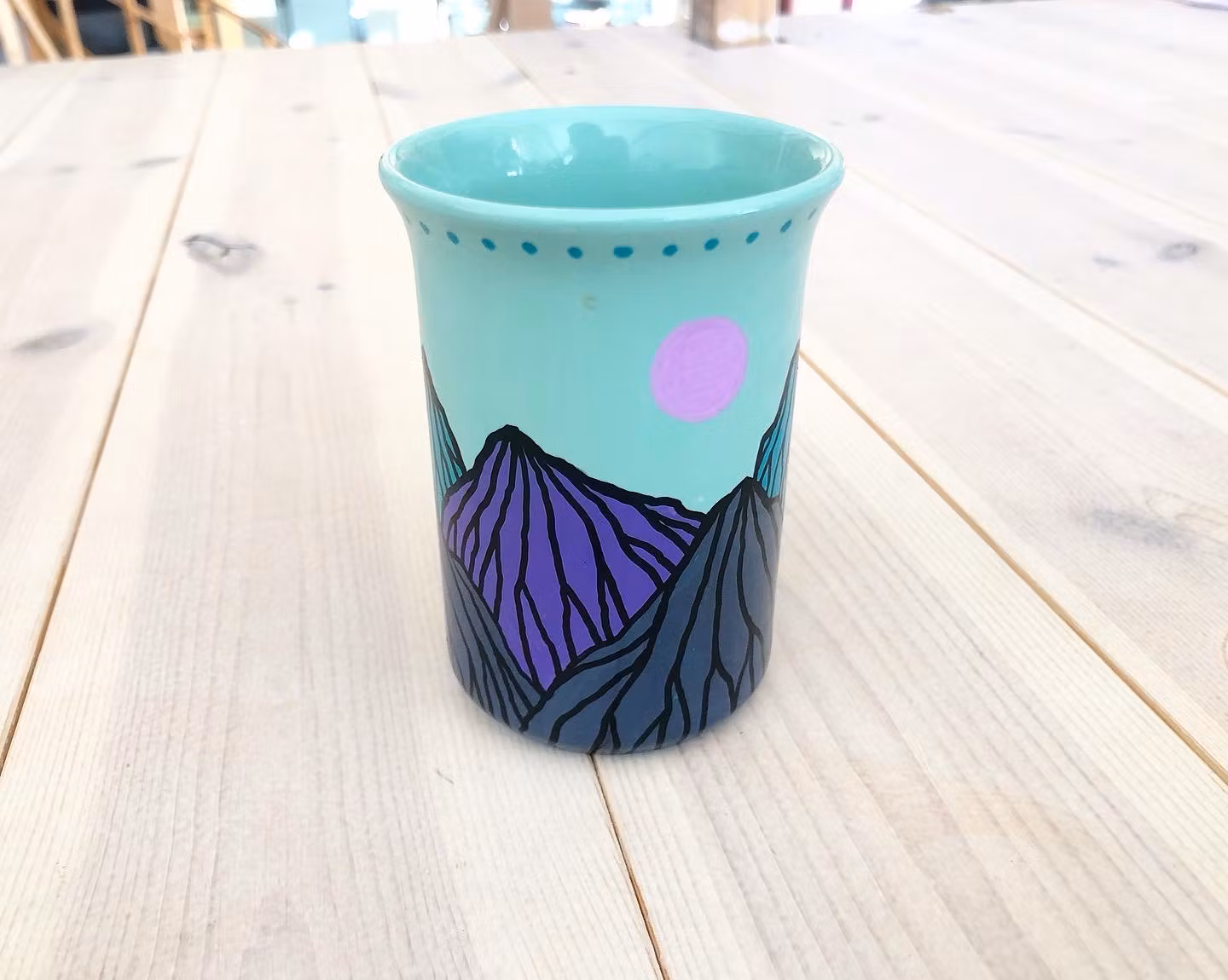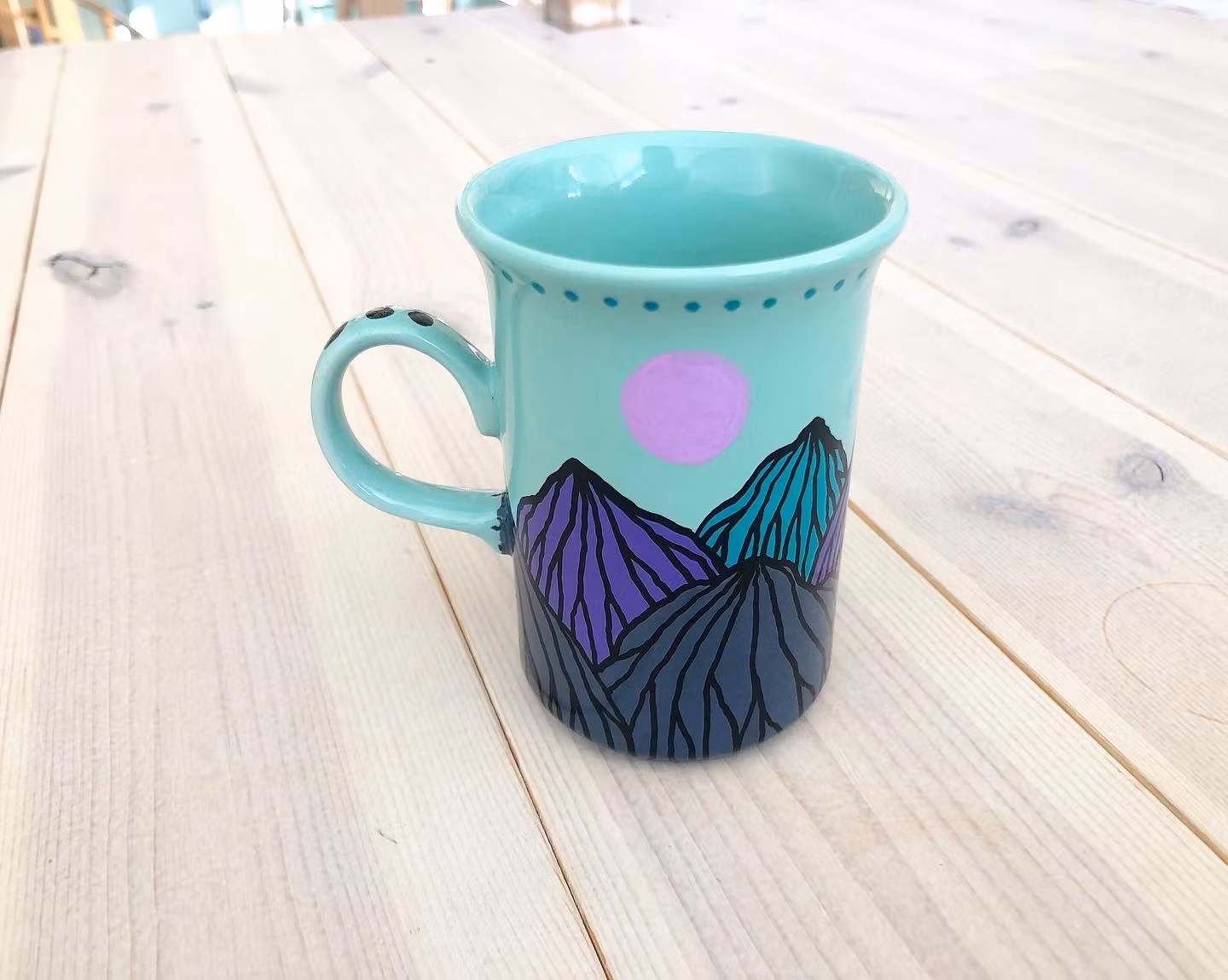 THREE MOONS (turkos) 380 kr Produkten är tyvärr slut i lager. :( Mugg med bergslandskap i pastellfärg. Bör diskas för hand.