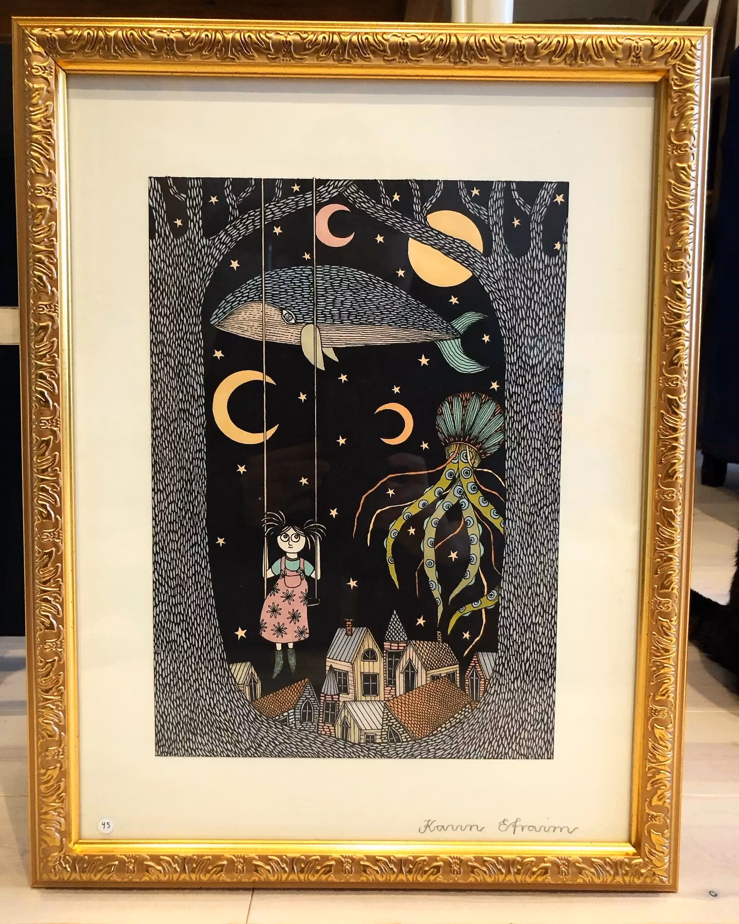 OMFAMNAD AV MÖRKER 4 450 kr Produkten är tyvärr slut i lager. :( Originalet till ”Omfamnad av mörker”. Guldram. Motivet är i A4 och med ram är den större. Ca A3 format. Fotot kan vara något otydligt eftersom glaset på ramen speglar.