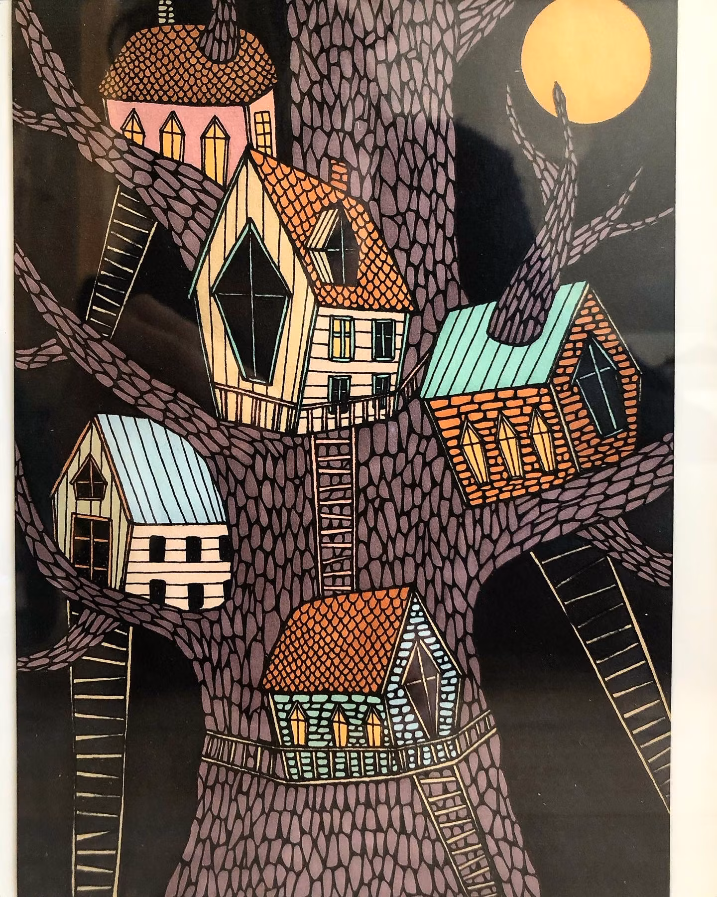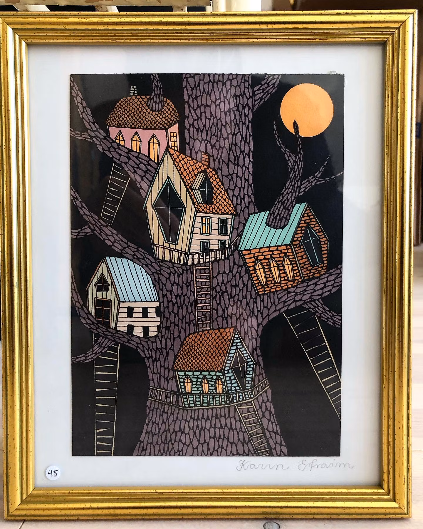 TRÄDHUS 3 550 kr Produkten är tyvärr slut i lager. :( Originalet till ”Trädhus”. Guldram. Motivet är i A5 och med ram är den större. Fotot kan vara något otydligt eftersom glaset på ramen speglar