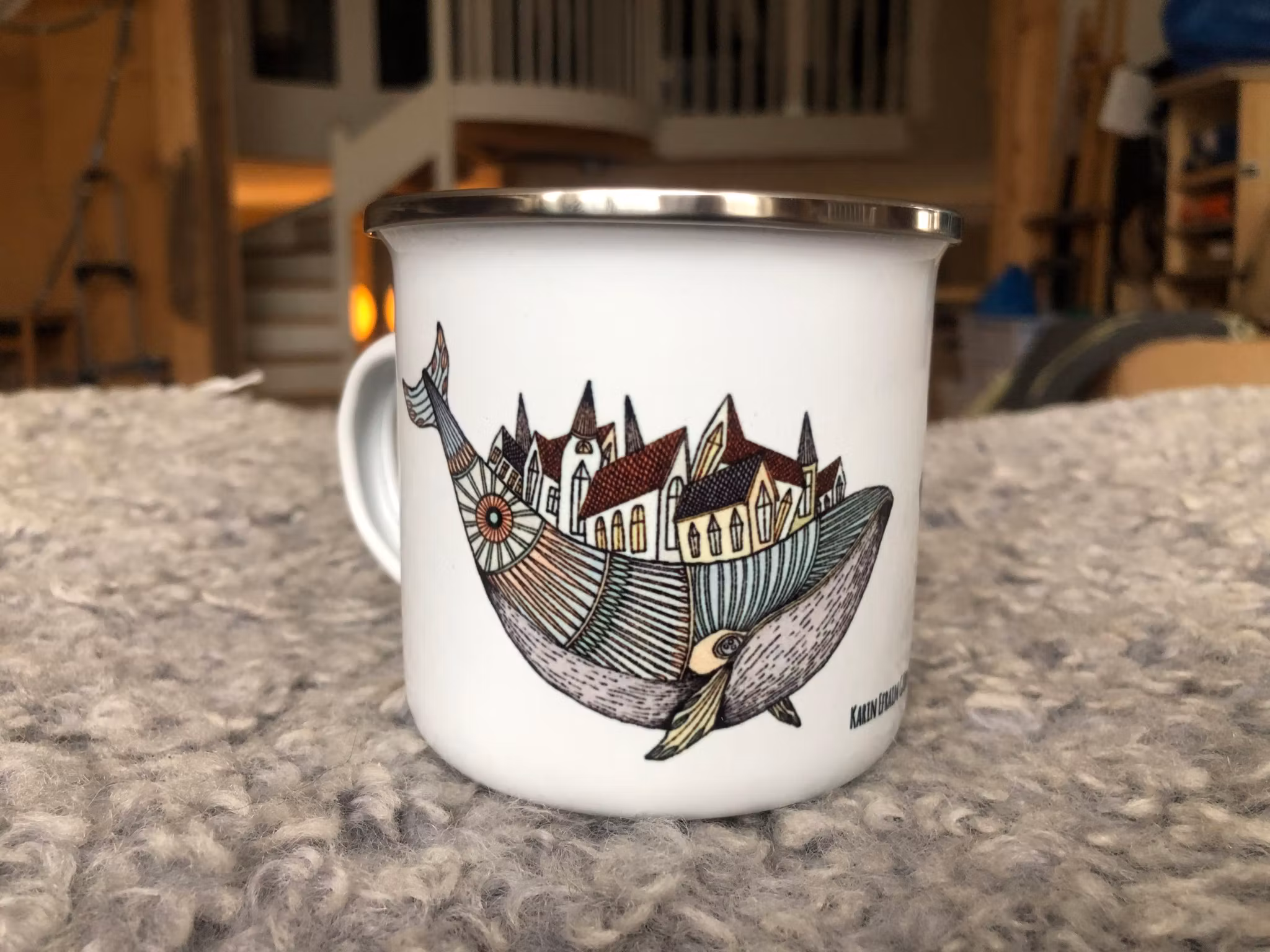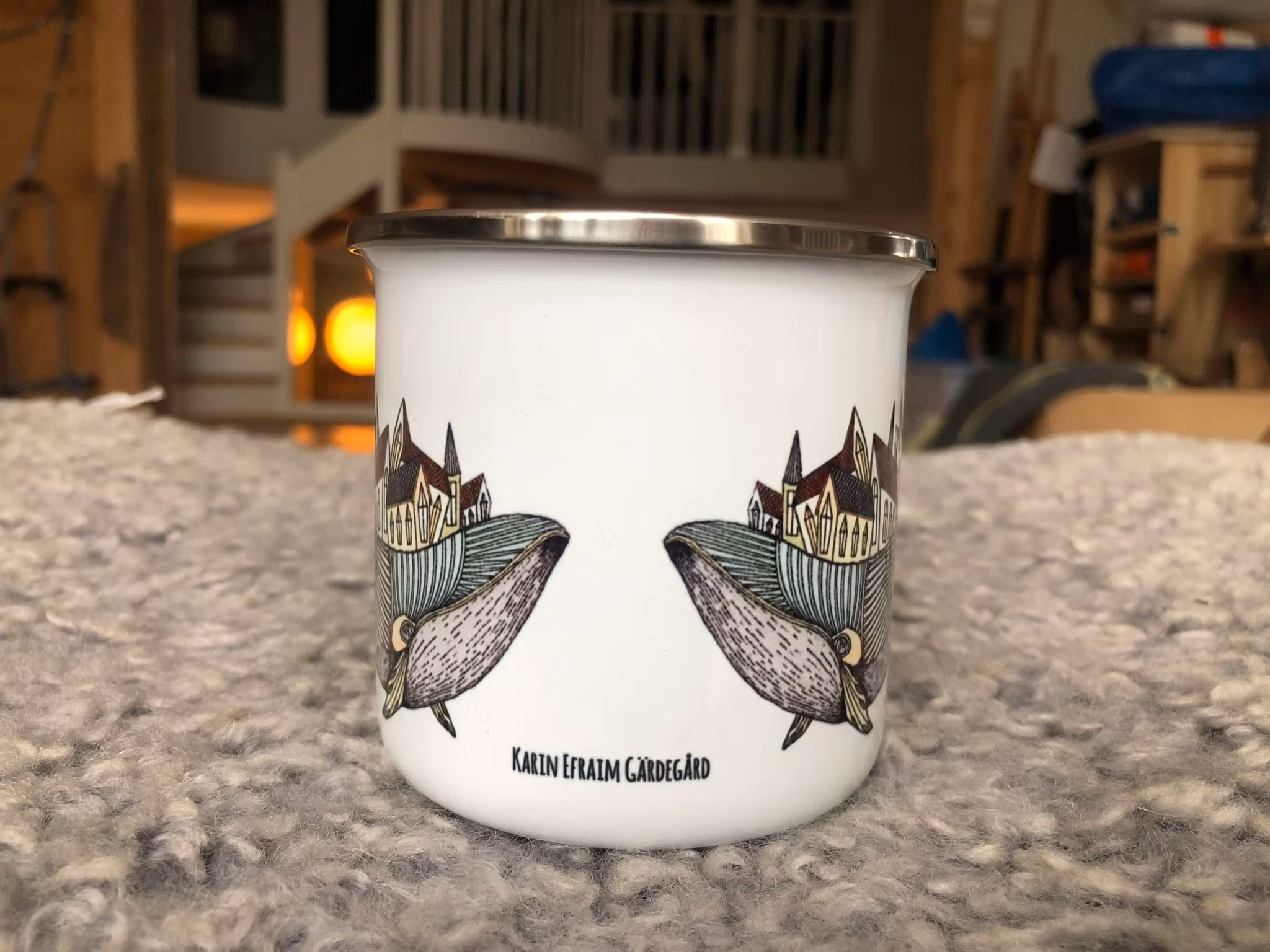 HUSEN (något mörkare tryck) 150 kr Produkten är tyvärr slut i lager. :( Emaljmugg med något mörkare tryck än originalet. Därav halva priset. Bör diskas för hand!